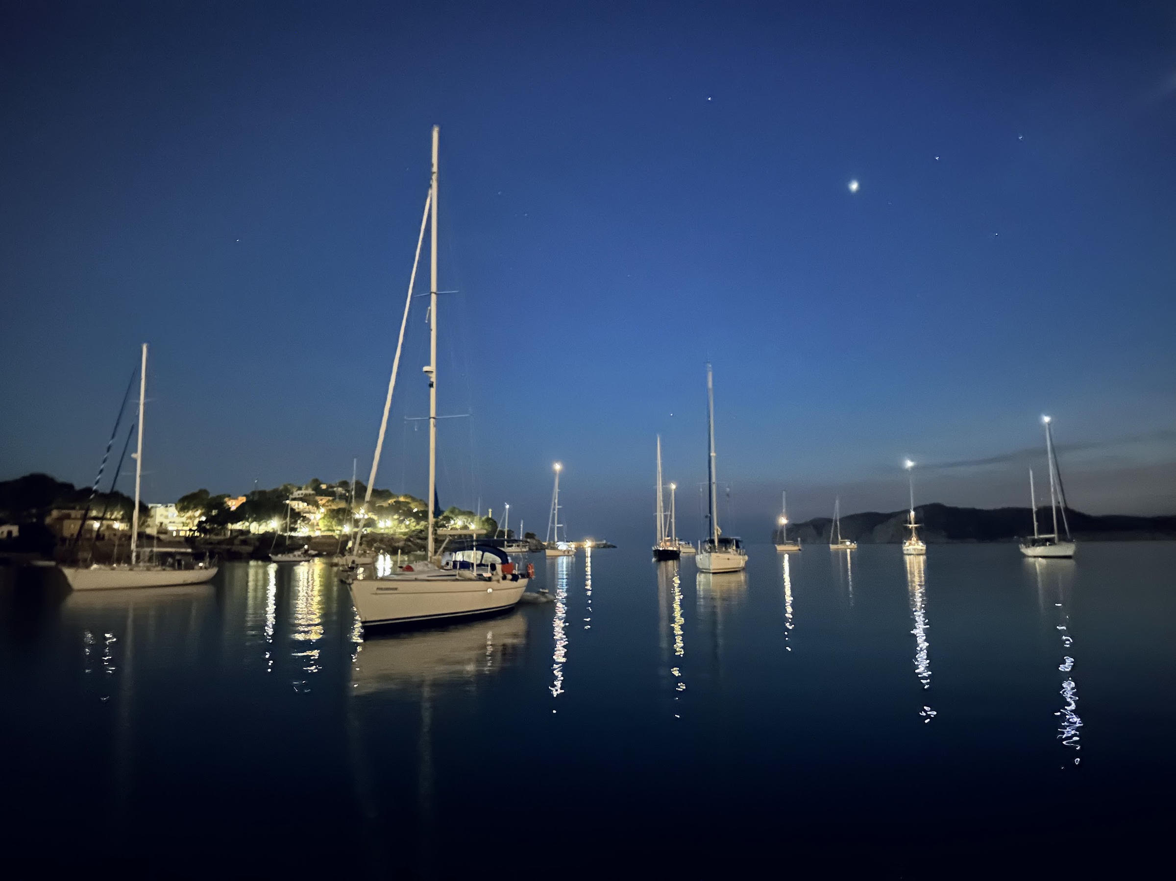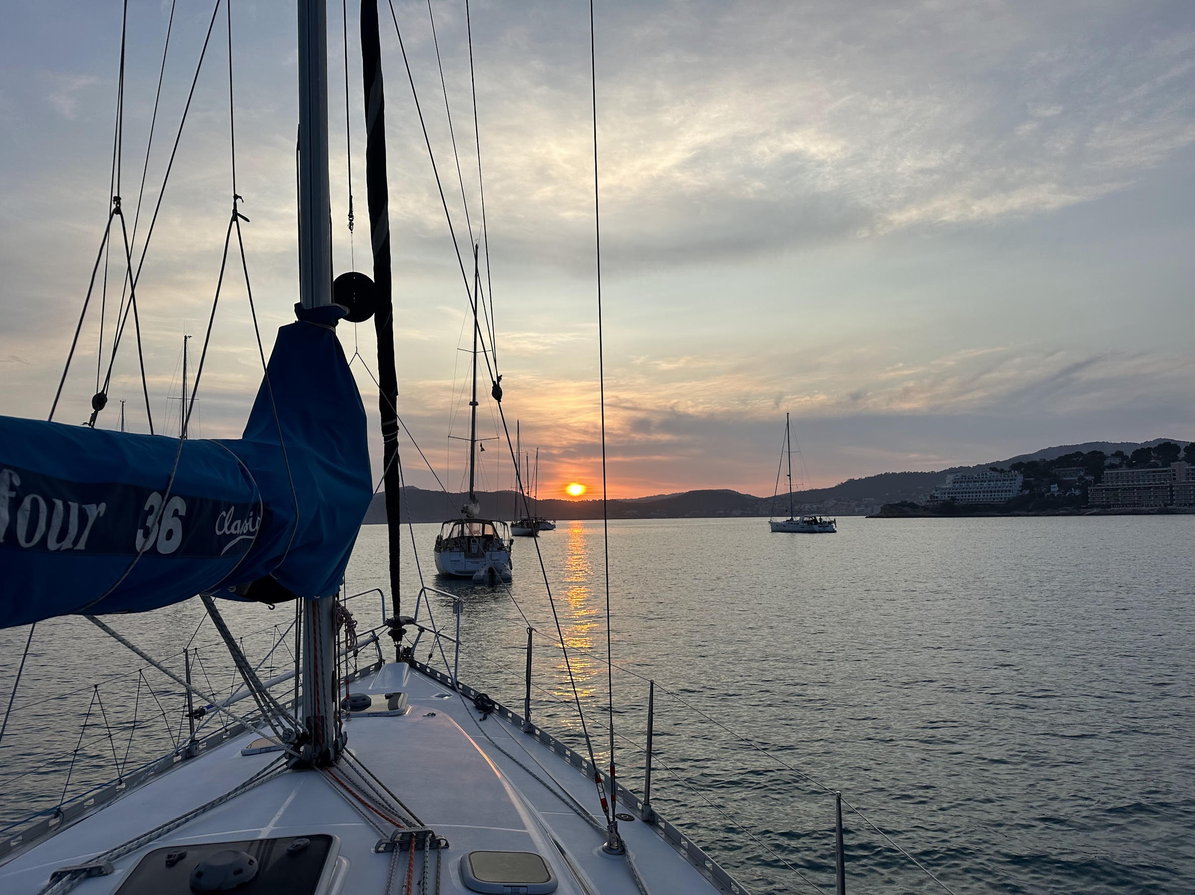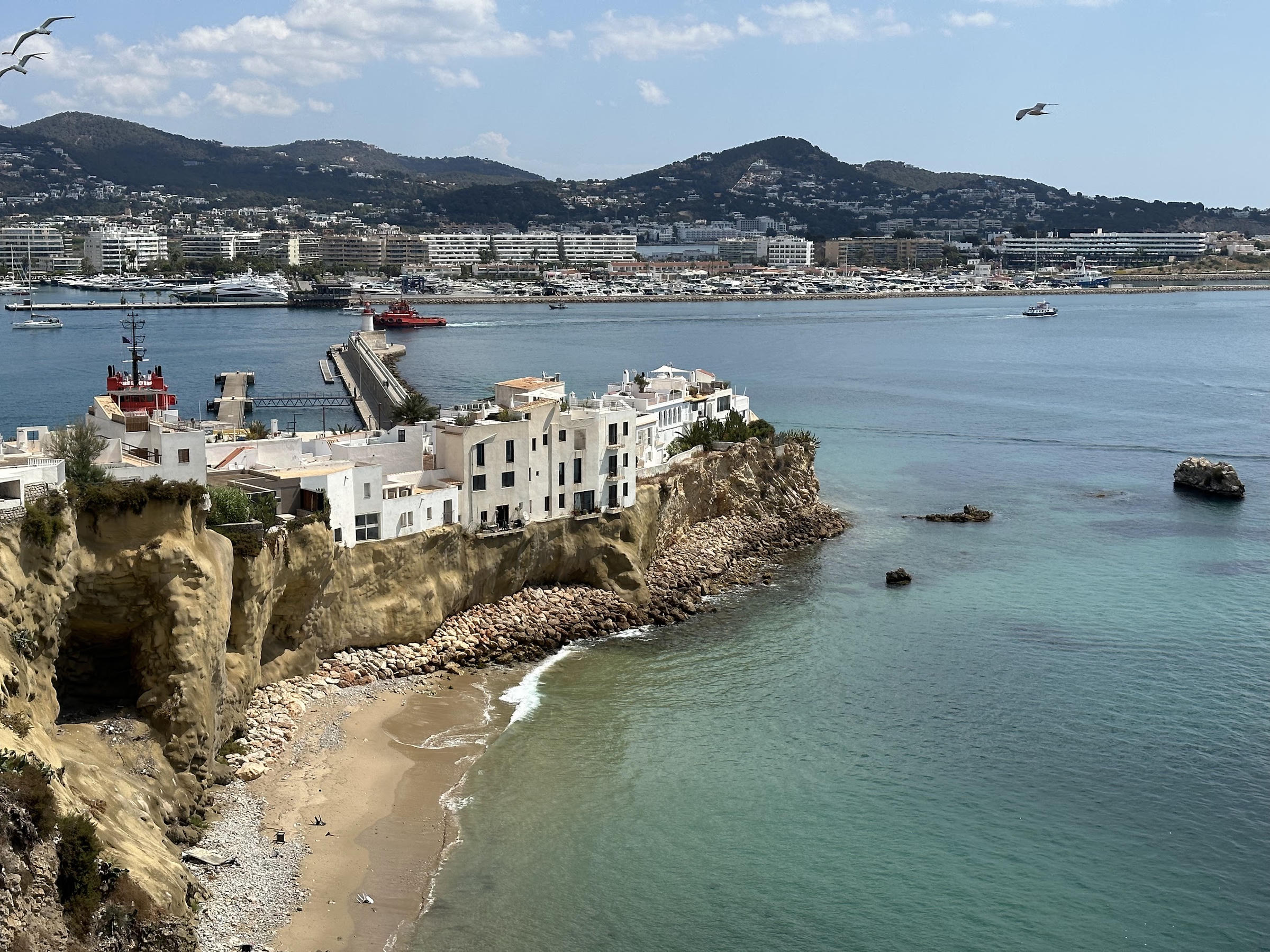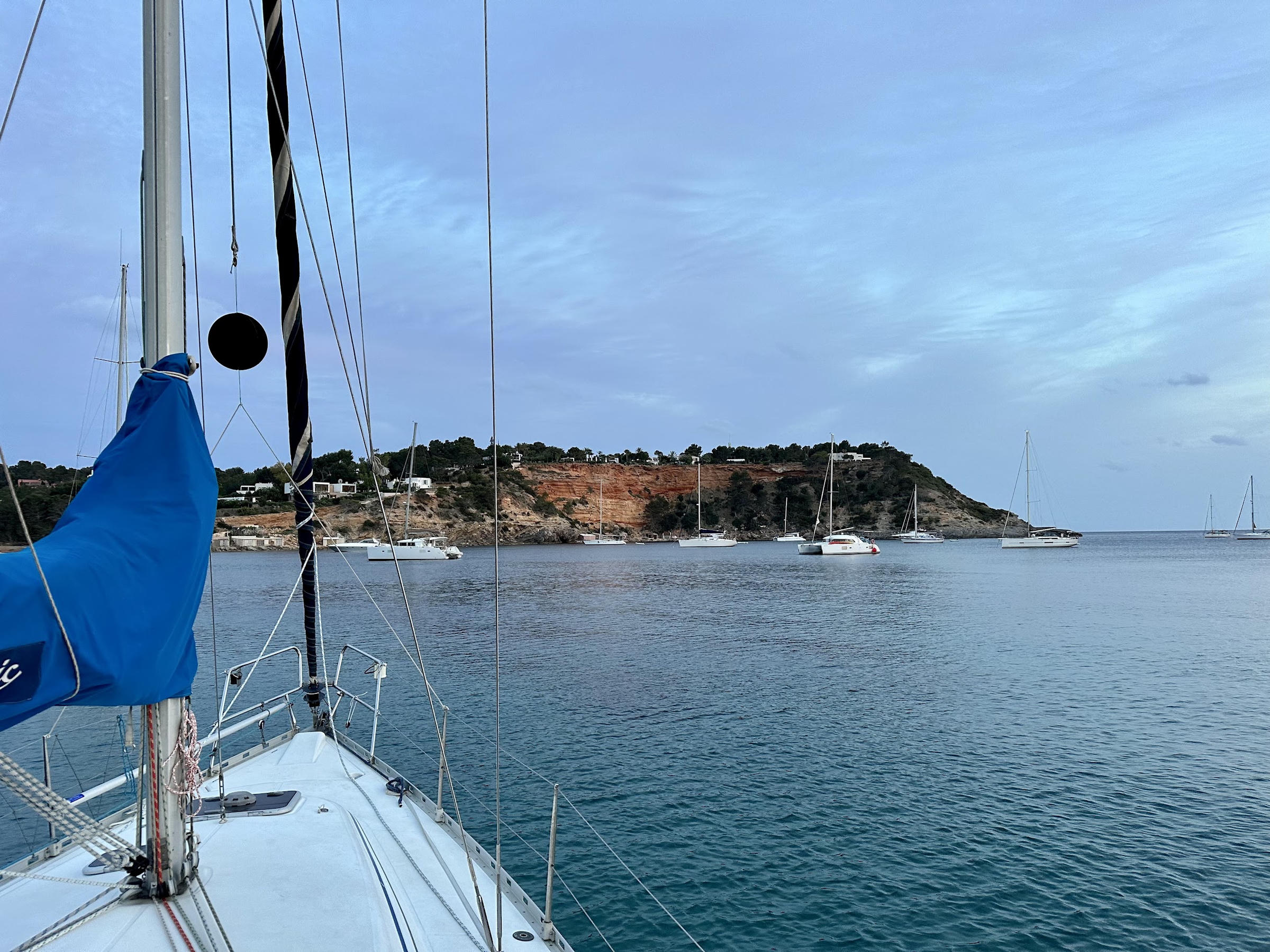 After spending two lovely weeks in Ibiza, the plan is to sail to Mallorca tomorrow. It’s just over 50NM so should take about 10 hours or so. We’ll be sad to say goodbye to this island as we’ve had a great time. We’ve anchored in secluded bays, in towns with an abundance of bars and restaurants, and also right next to Ibiza Town which was a must-see. At the moment we’re in Santa Eulària des Riu (still no clue how you’re supposed to pronounce it) where we’ve been for almost a week. We anchored for two nights then nipped into the marina when the easterly winds arrived as they made the anchorage rolly and uncomfortable. It’s been nice being in a marina again as it’s just so easy to get on and off the boat (and we can make coffee in the Nespresso machine!) but we’re looking forward to the tranquility of being at anchor again, as is our bank account :)
