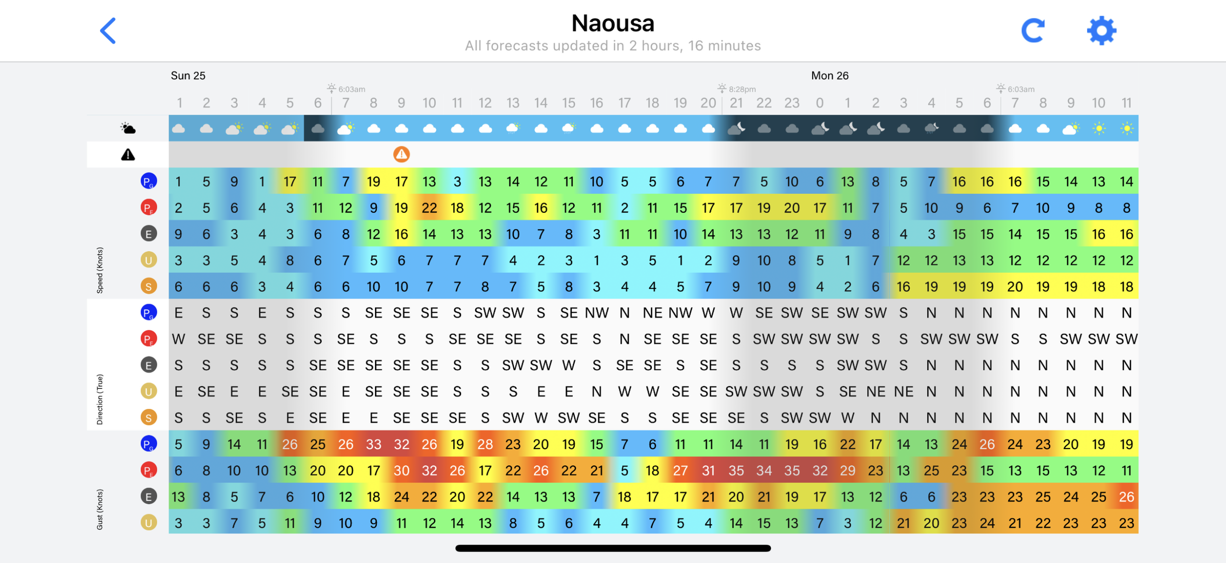 We use a range of different weather models to help us figure out what weather we can expect. The models are produced by five or so different companies who use a range of different methodologies to predict what will happen, and when. If they all agree, then you can be reasonably sure what you're going to get. And the closer you get to the day, the more likely it is that they will converge. If they disagree, then it's anyone's guess what's in store for you. We tend to take the average prediction and plan for that. Sometimes there are big outliers (either a lot or very little wind), so those we tend to ignore. To make things more interesting with the wind, local land masses can significantly alter the direction and the speed of the wind as it bends around headlands and hills to find its shortest path (to wherever the hell it's trying to get to!).