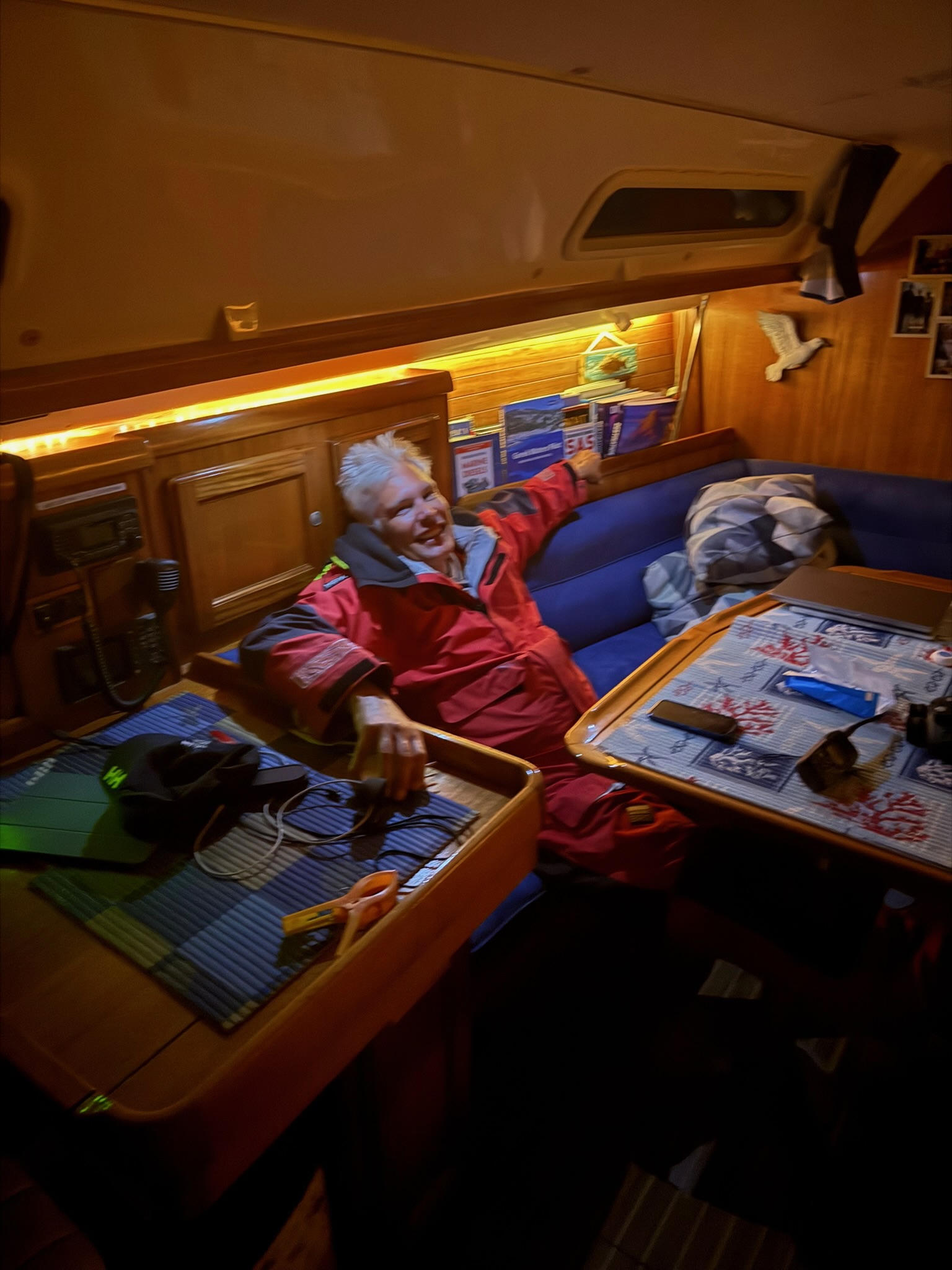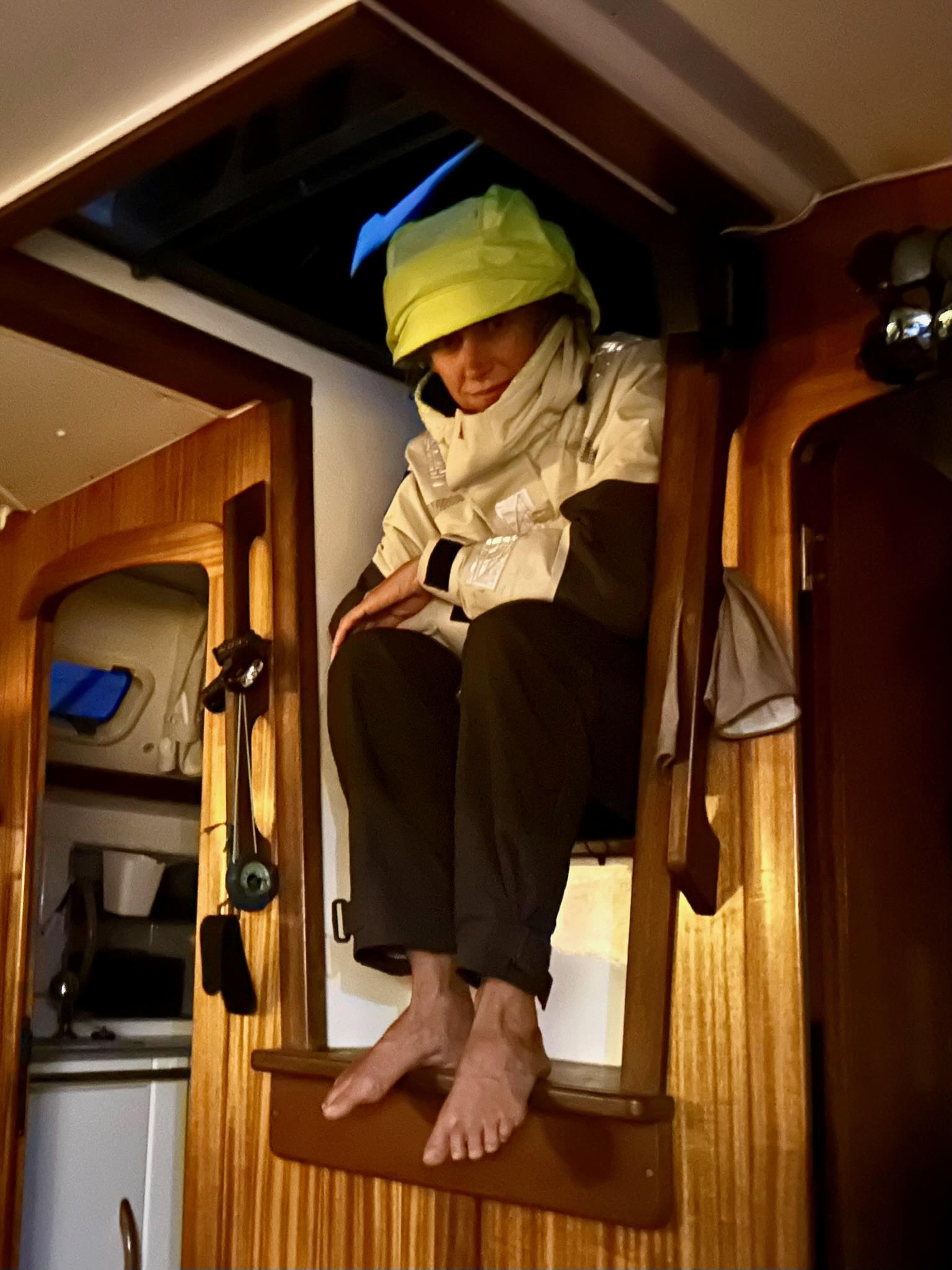 It was only 0300, time was on 0.5x speed! There was nothing more we could really do, and there was not a hope in hell of sleeping, so sat in our wet weather gear we (half) watched a movie, Naked Gun, whilst hawk-eyeing the wind (although, it was a bit pointless as it was what it was). We tried to make light of the situation and convince ourselves we'd look back on this whole thing and laugh, but at the time that's difficult to believe. The lack of sleep, the pitch darkness and the not knowing if things will get worse all make it really nerve-wracking. Also too, you can't just "nope out" and get off, you have to sit it out.